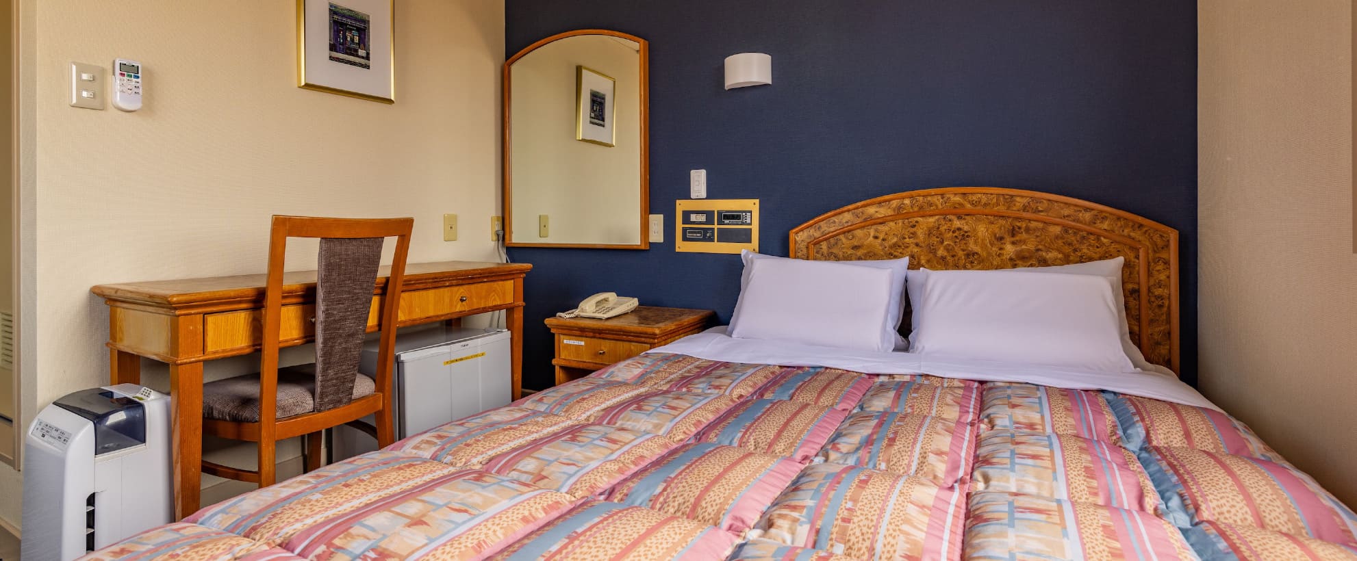 バストイレ / シャワー / 冷暖房 / テレビ / 電話(内線のみ) / 冷蔵庫(電源スイッチを入れて使用してください)/ 湯沸かしポット / ドライヤー / ハンガー / フェィスタオル / バスタオル / ガウン / スリッパ