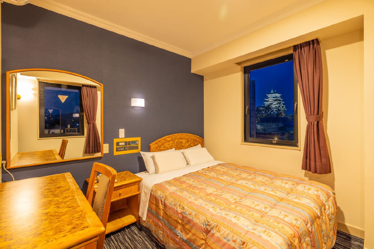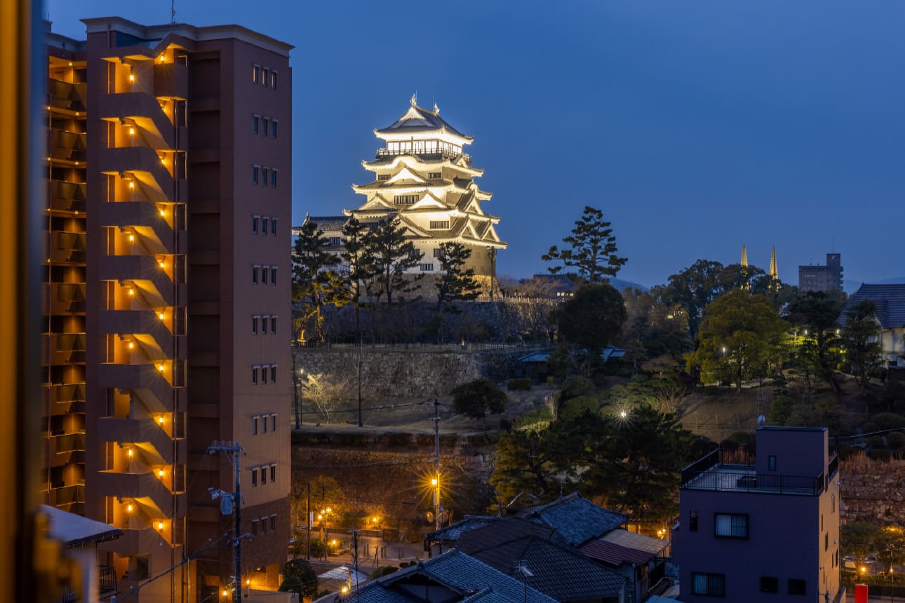 モデレートダブルはお城側の客室です。福山の街をゆっくりお楽しみください。